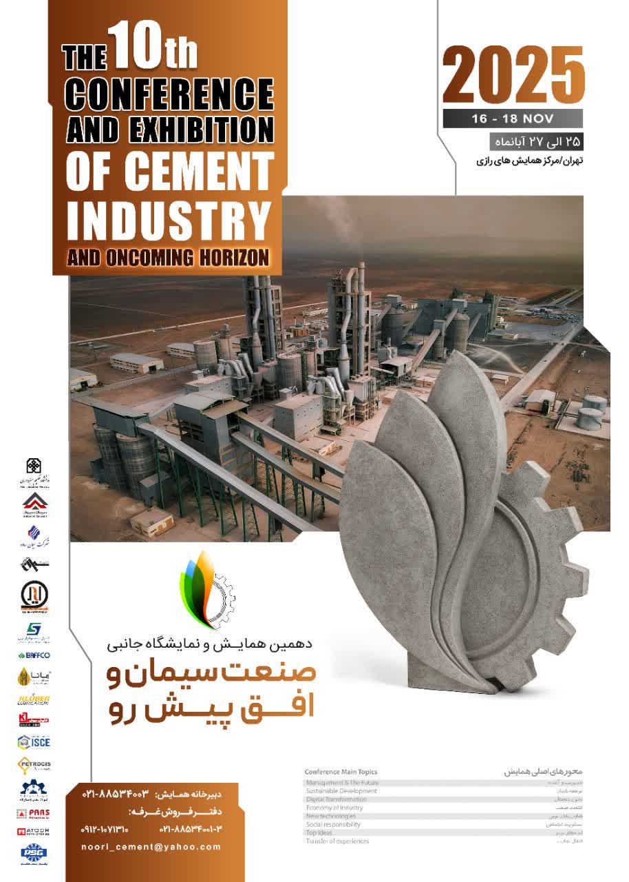 دهمین همایش و نمایشگاه صنعت سیمان و افق پیشرو با هدف بررسی آخرین دستاوردها، چالشها و فرصتهای پیشروی صنعت سیمان کشور، از ۲۵ تا ۲۷ آبانماه ۱۴۰۴ (۱۶ تا ۱۸ نوامبر ۲۰۲۵) در تهران، مرکز همایشهای رازی برگزار میشود.